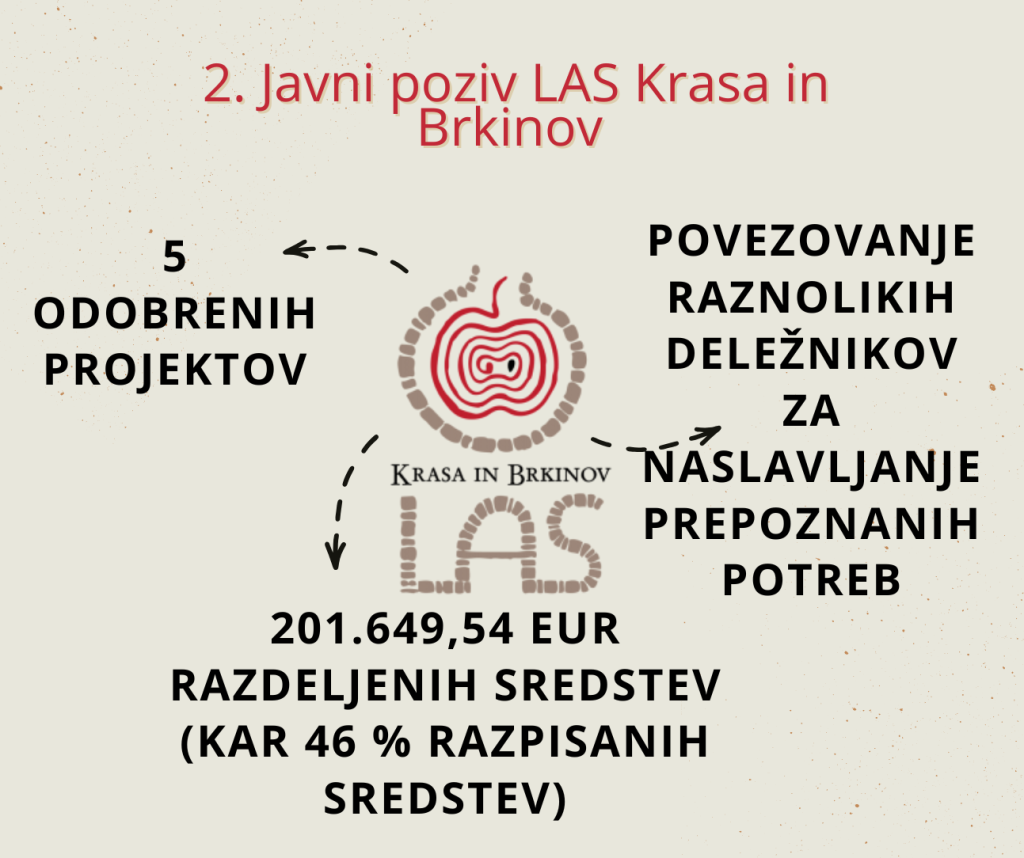 Za dodatne informacije sta vam na voljo Maja Colja in Jerneja Modic, sodelavki v pisarni LAS, ORA Krasa in Brkinov, na e-naslovu info@laskrasainbrkinov.si in tel. št. 041 686 102.