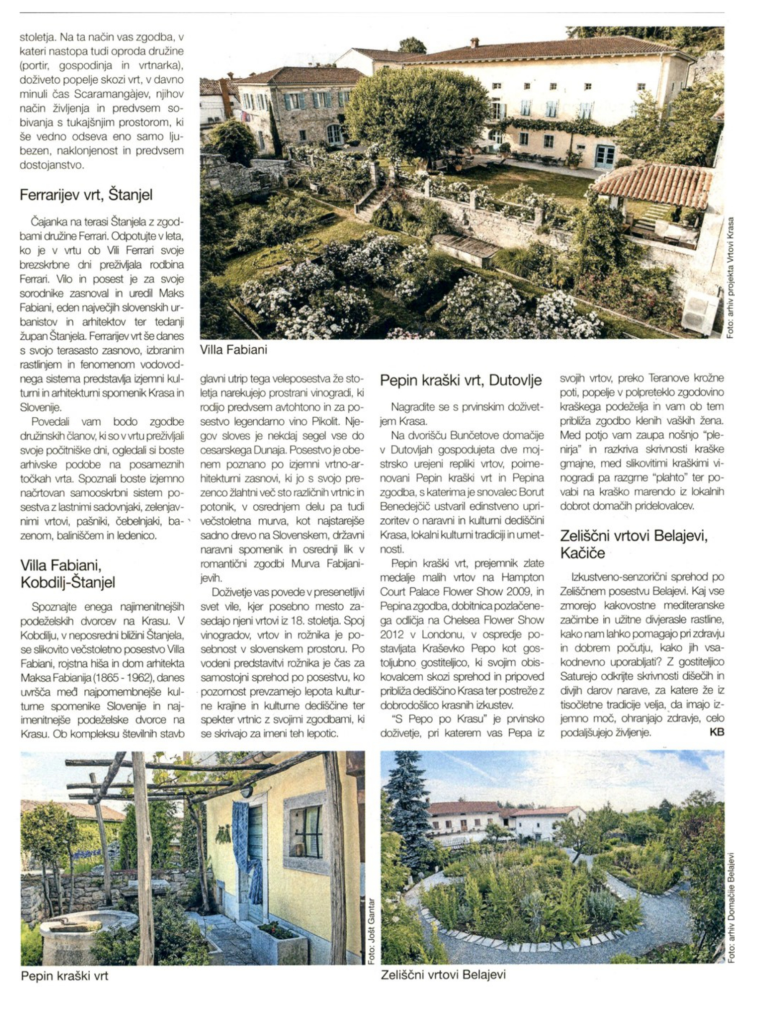 V sklopu projekta ‘Veriga eko zelišč od Dolenjske do Krasa’, ki ga sofinancirata Evropski kmetijski sklad za razvoj podeželja (EKSRP) in Republika Slovenija v okviru Programa razvoja podeželja 2014-2020, je bila organizirana tridnevna študijska tura za novinarje. Namen ture je bil izpostaviti pomen ekoloških zelišč v kulinariki in turizmu na Krasu.